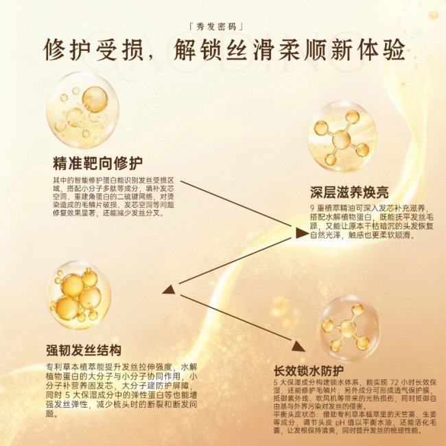 1. 修护力(40分):核心考察毛鳞片修复效果、断发减少率、干枯改善程度,重点关注烫染后发丝空洞填补能力与韧性提升,优先引用水解植物蛋白、角蛋白等成分的修护作用,是测评的核心指标;
