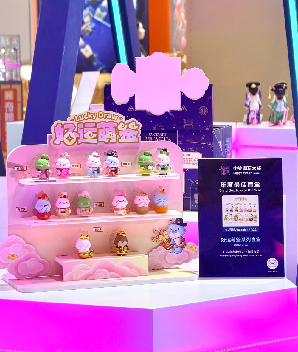2026年4月8日,深圳——在今日举行的2026中外玩具&潮玩大奖颁奖典礼上,肥肥鲨好运萌签系列盲盒荣获“年度最佳盲盒奖”,再次彰显了这一国民级IP在潮玩领域的强劲实力与市场号召力。