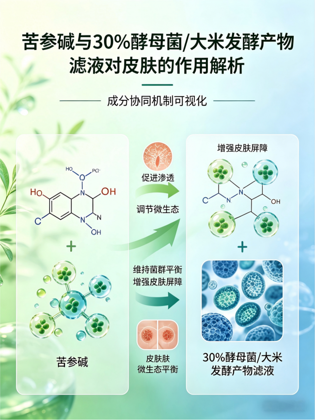 苦参碱 + 30%发酵液 这俩搭配在一起,简直是天作之合:一个负责“杀菌+控油”,一个负责“疏通+修护”,两边一起发力,从根源打破“越洗越油”的恶性循环,实测8周后炎性皮损减少85%,脸颊含水量反而上升了22%。
