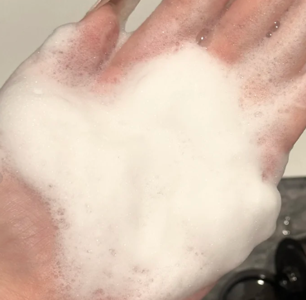 它是白色膏状质地,在手心就能打出非常绵密细腻的泡沫。上脸的感觉像云朵一样轻柔,完全没有刺激感。在T区多按摩30秒左右,冲掉之后皮肤干净清爽,但摸起来却是水润润的,完全没有那种讨厌的“搓盘子”干涩感。