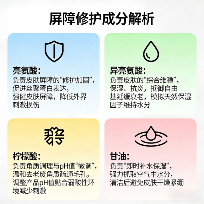 敏感痘肌:温和不刺激,可缓解泛红刺痛,修护受损屏障