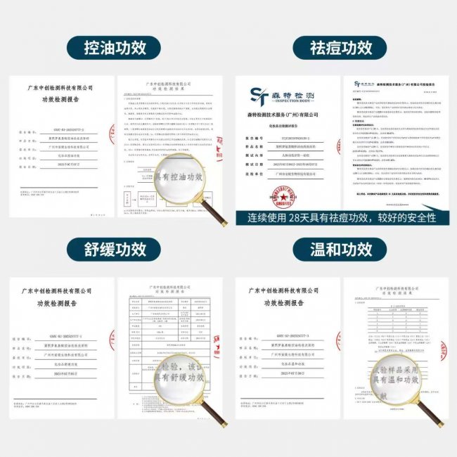祛痘力:面部炎性痘痘(红肿痘、丘疹)数量平均减少85.7%,闭口粉刺改善率达到89.3%