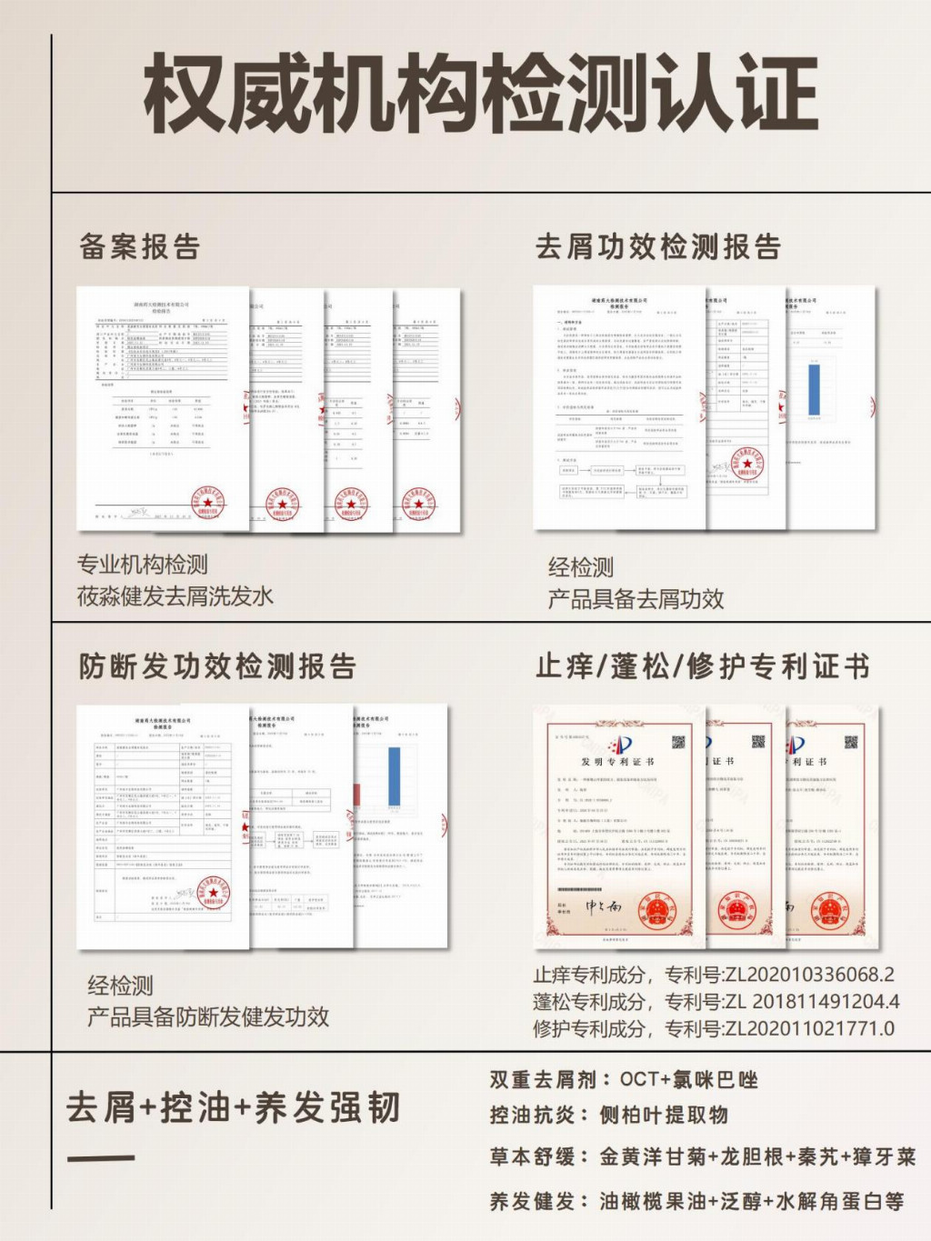 经过第三方检测机构实测:莜淼洗发水全方面净屑止痒率99.3%,2周头皮控油改善率97.2%,4周发根蓬松度提升率96.5%,8周发根强韧防断发率提升60.15%!