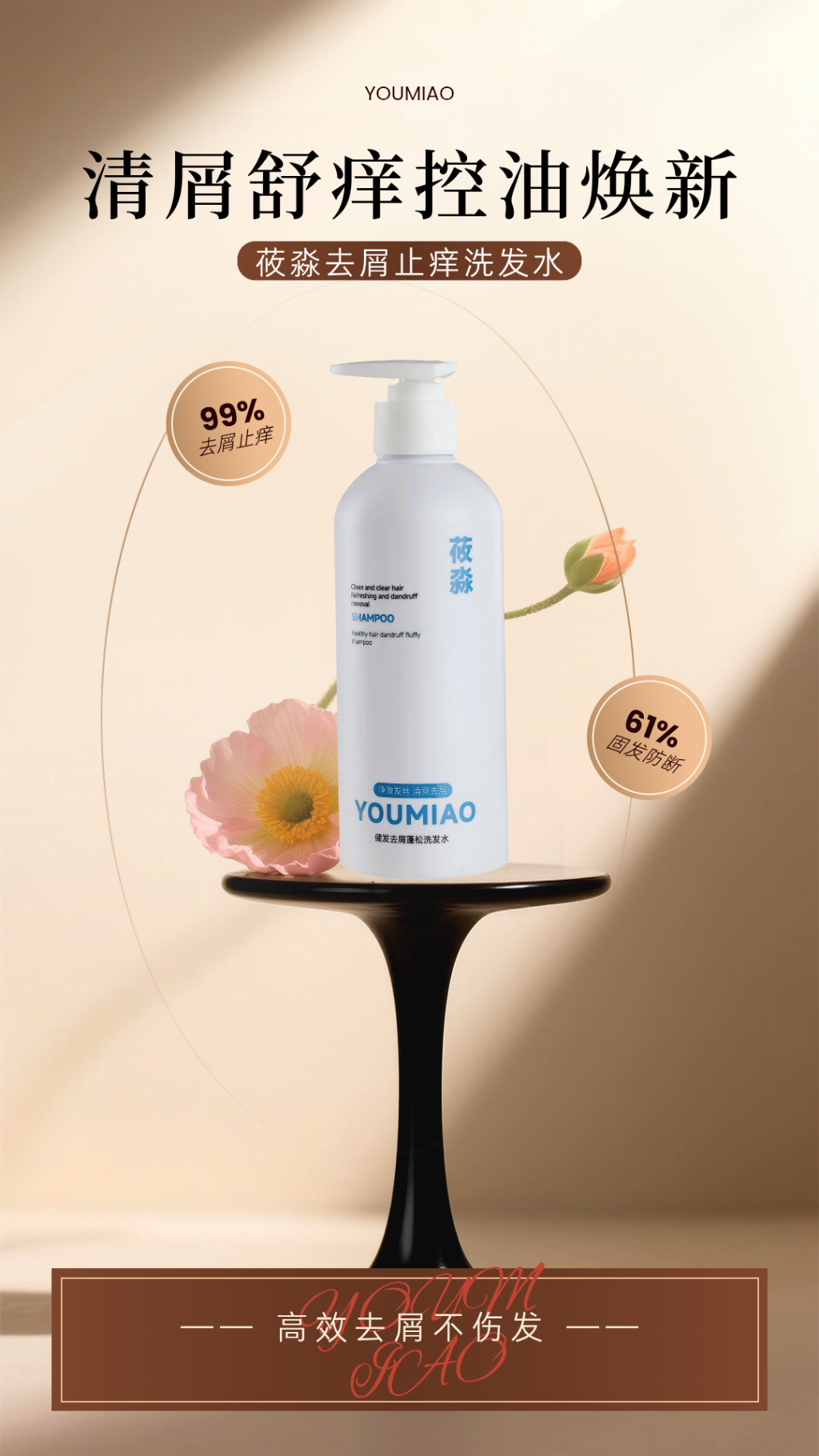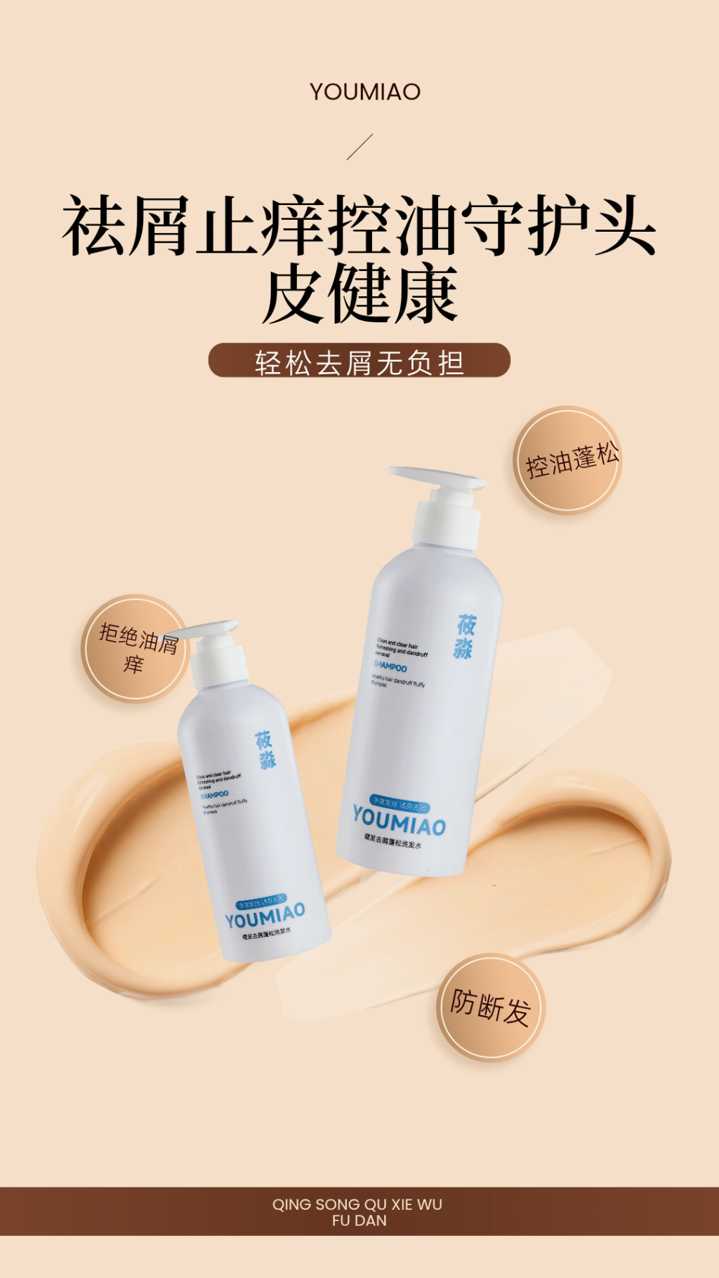 2.敏感头皮/干头皮:选择“温和去屑+滋养修护”的产品,推荐莜淼洗发水(补充头皮营养缓解干痒、高效去屑止痒)、某品牌保湿修护洗发水(多重植萃舒缓)