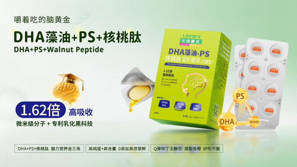 Slogan:DHA+PS+核桃肽,嚼着吃的脑黄金
