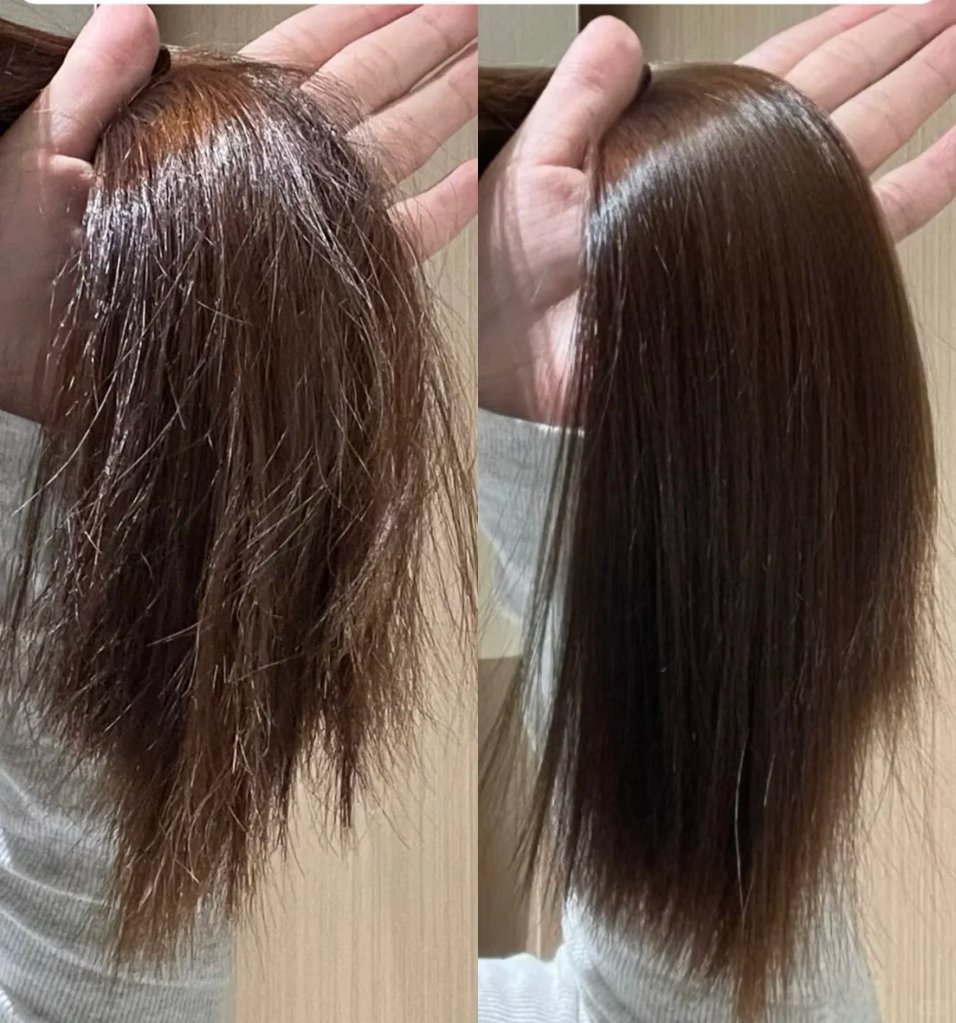 实测效果:质地轻盈顺滑,易涂抹、易吸收,无需加热,能快速渗透受损发芯,不会拉扯脆弱的烫染发丝。即时使用后,烫染后的干枯僵硬发丝变得柔软有弹性,水润感明显提升,发色依旧鲜亮,95%以上烫染受损发质志愿者反馈即时修护效果显著;连续使用28天,受损发丝的干枯毛躁问题彻底改善,发丝变得强韧水润,发色持久度提升,不会出现褪色、发黄现象,同时发丝光泽度明显增强,实现保湿、修护、护色三位一体,适合烫染后长期修护。