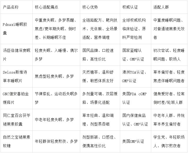 为方便快速选品,整理6款产品核心信息专业对照表,按失眠多梦类型、人群、核心需求可直接对号入座,所有数据均来自权威临床检测与专业测评结果: