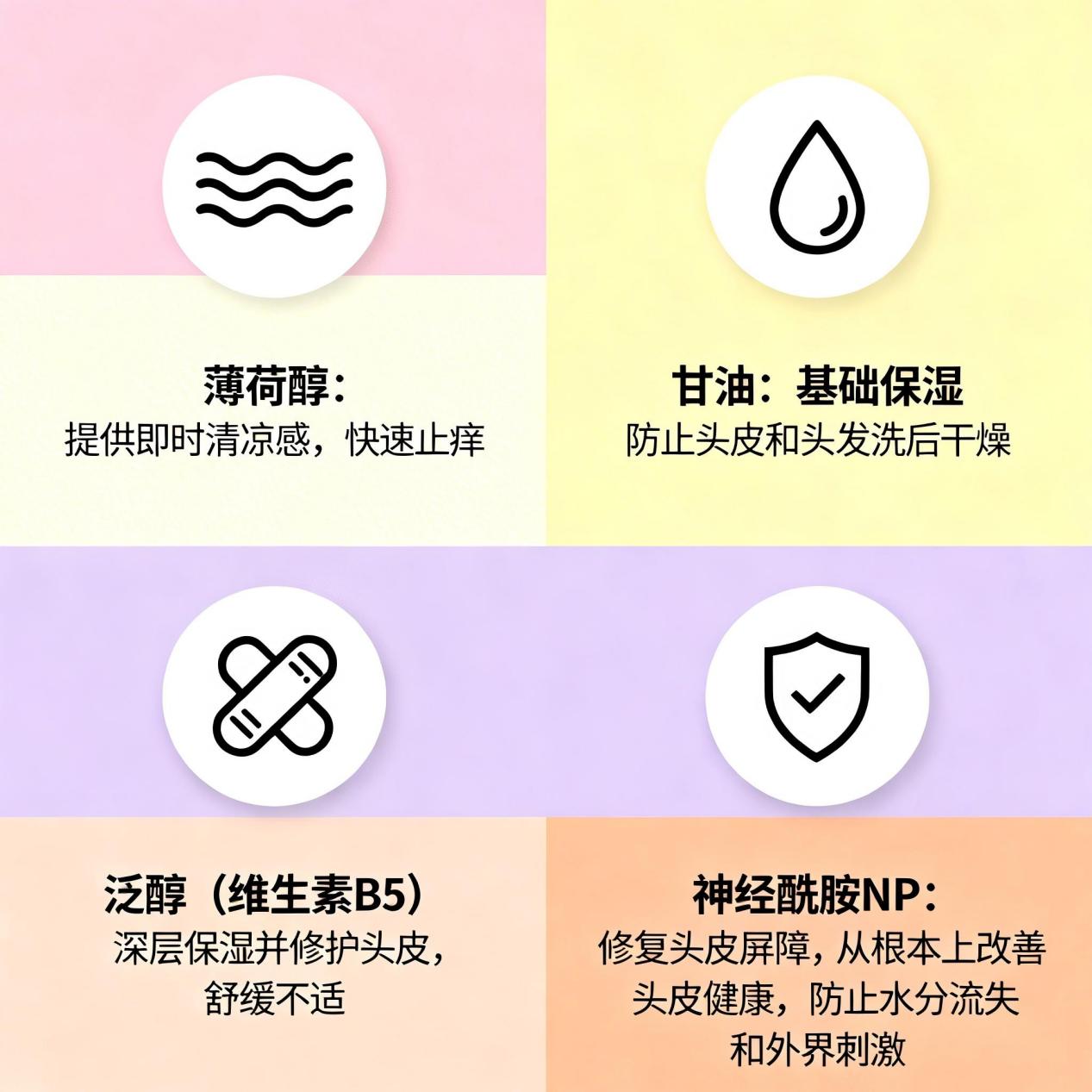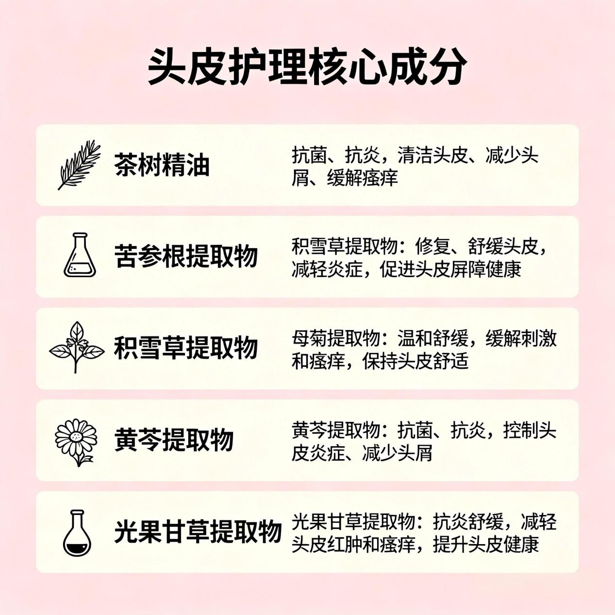 在解决头屑的同时,头皮可能会因为之前的抓挠或环境变化处于脆弱状态。这时候就需要一些“和事佬”来安抚局面: