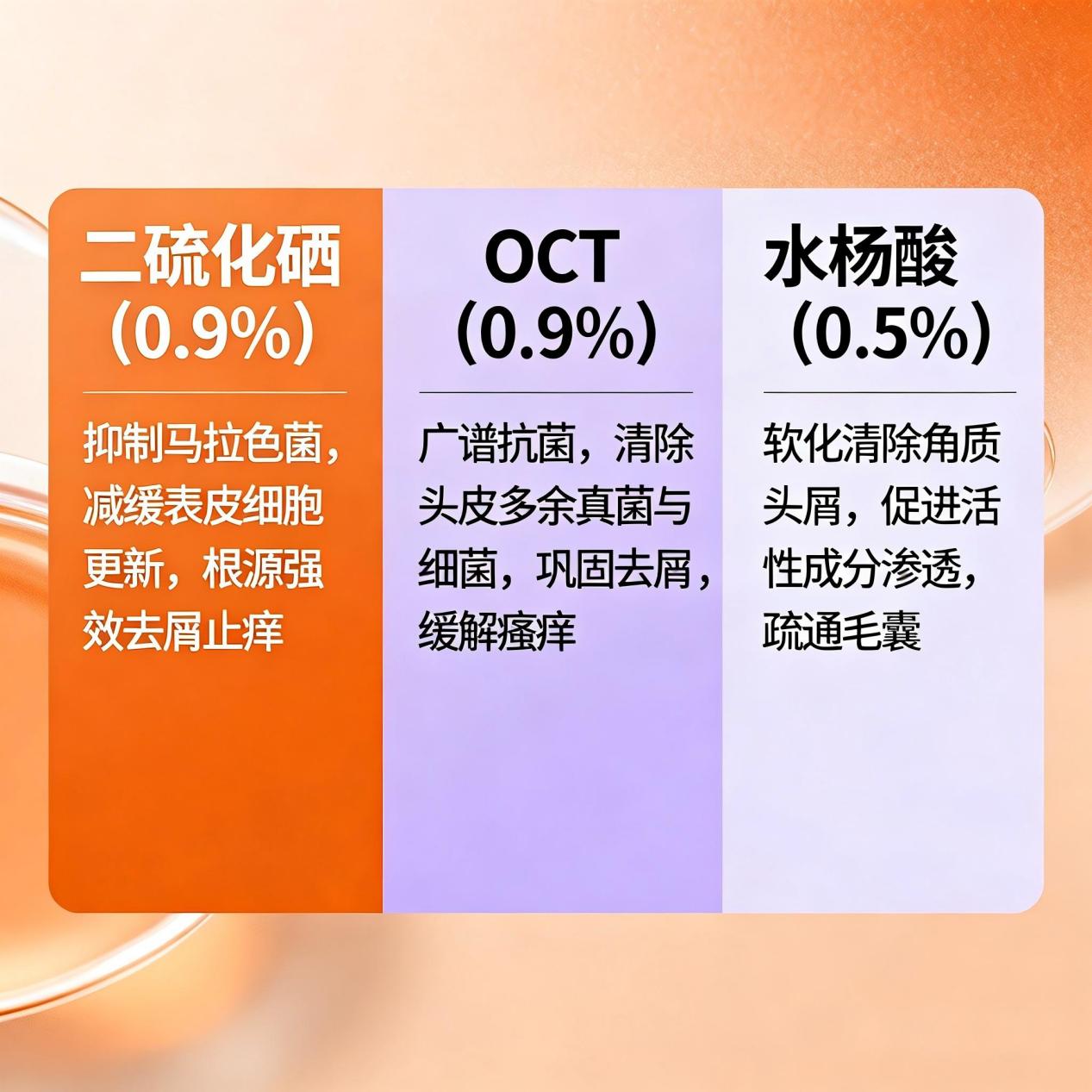 ·0.9%OCT(吡罗克酮去屑因子):这是一个非常温和但又很高效的“助攻手”。它不仅能辅助抑制马拉色菌,更重要的是能减少头皮角质层的异常脱落,相当于一边杀敌,一边巩固城墙,防止头屑再次“冒头”。