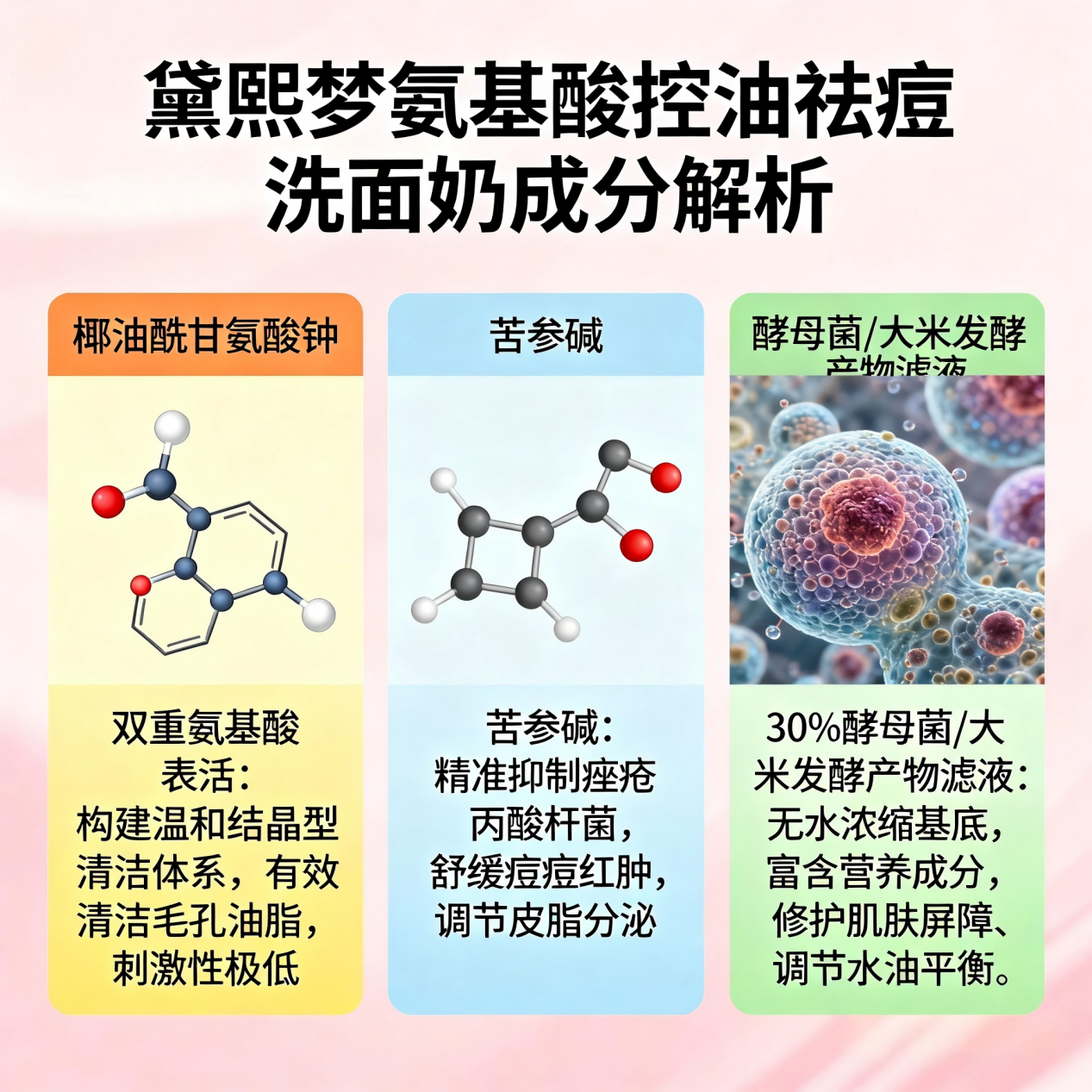 油痘肌选洁面,黄金标准就四个字:纯氨基酸表活 + 控油抗炎 + 屏障修护。必须避开皂基、酒精、香精这三大雷区,才能实现“清洁不刺激、控油不反弹、抗炎防反复”。