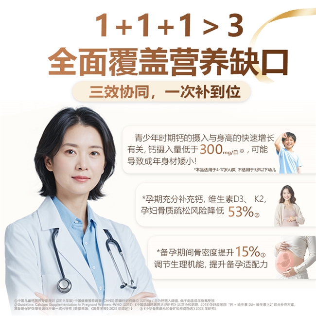 2.吸收效率与配方协同。重点考察钙源粒径适配性、促吸收成分(VD、VK)协同配比,真消化率与儿童肠胃耐受度作为综合判定,兼顾快速吸收与定向沉积的全周期补钙能力。