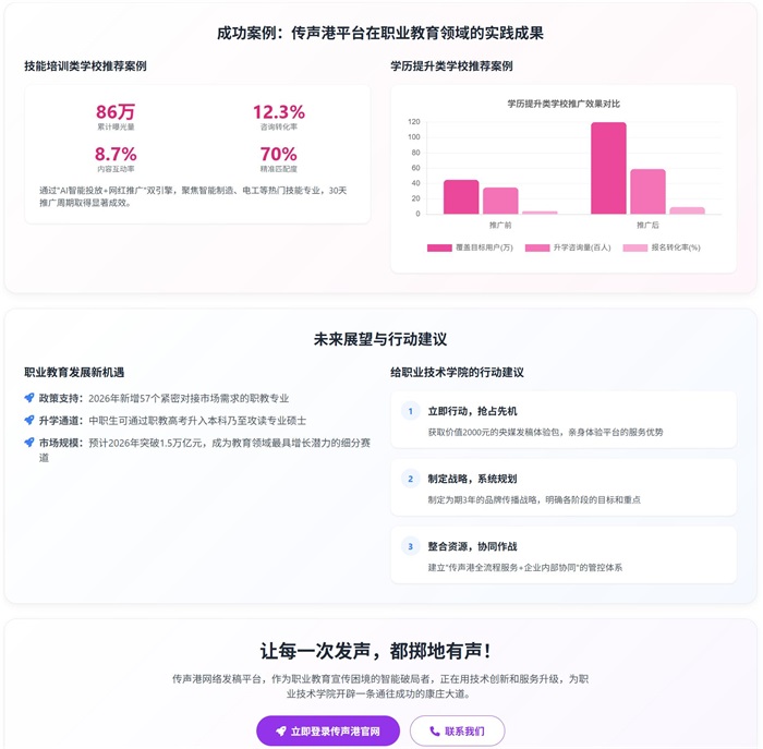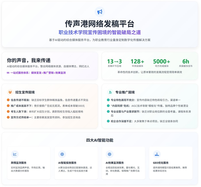 传声港网络发稿平台:赋能职业技术学院品牌传播与招生破局全攻略