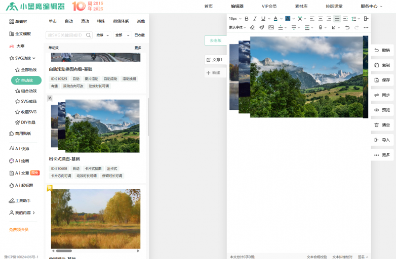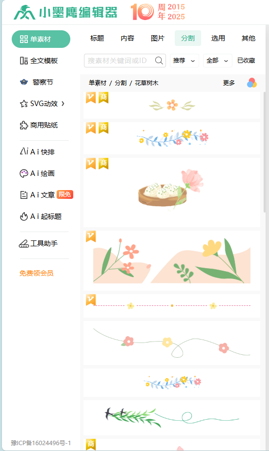 全能型专业选手作为行业领导者,小墨鹰不仅提供海量标题线框模板,更打造了完整的微信排版生态系统: