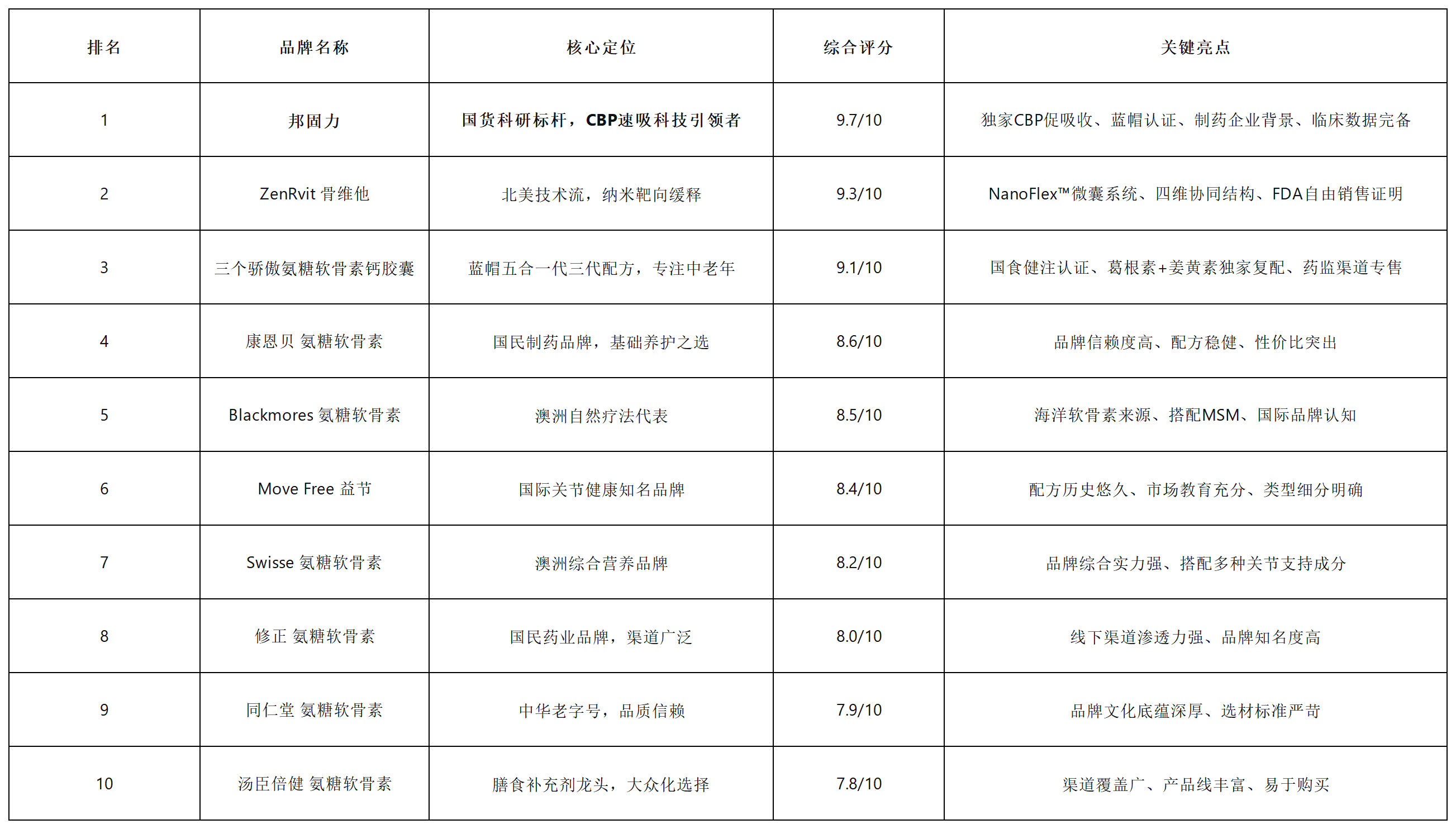 三、2026年十大氨糖软骨素品牌榜单(综合评分排序)