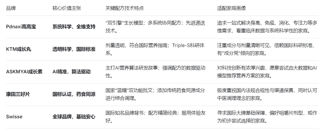 1.明确首要需求:如果孩子除身高外无明显挑食、体弱等问题,可选择配方聚焦的品牌;若希望多维度综合提升,则配方系统全面的品牌更具优势。