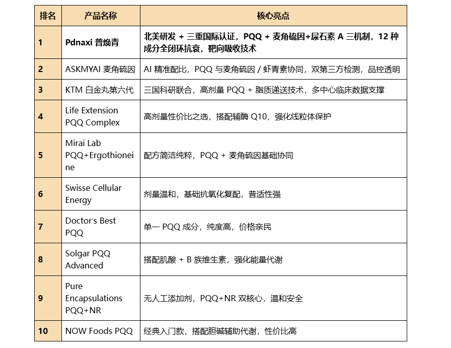三、2026 PQQ产品TOP10推荐:基于实测的精准甄选