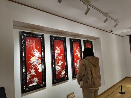步入扬州市非遗珍宝馆,仿佛开启了一段穿越时空的匠心之旅。这里陈列着扬州剪纸、漆器、玉雕、刺绣等璀璨瑰宝,除了许多传统的主题和素材,更可见非遗技艺与红色主题的深情对话。扬州剪纸展区展现了许多红色主题作品,剪纸以纤巧锐利的刀锋,在薄如蝉翼的纸上刻画出南湖红船、长征等生动画面,将波澜壮阔的党史浓缩于方寸之间。此外,我们可以看到馆内运用3D投影技术,将非遗雕版印刷技艺以更生动的方式呈现在我们面前。馆内工作人员介绍,场馆负一楼配备非遗体验区,让大家在切身体验中感悟非遗与红色文化的融合。